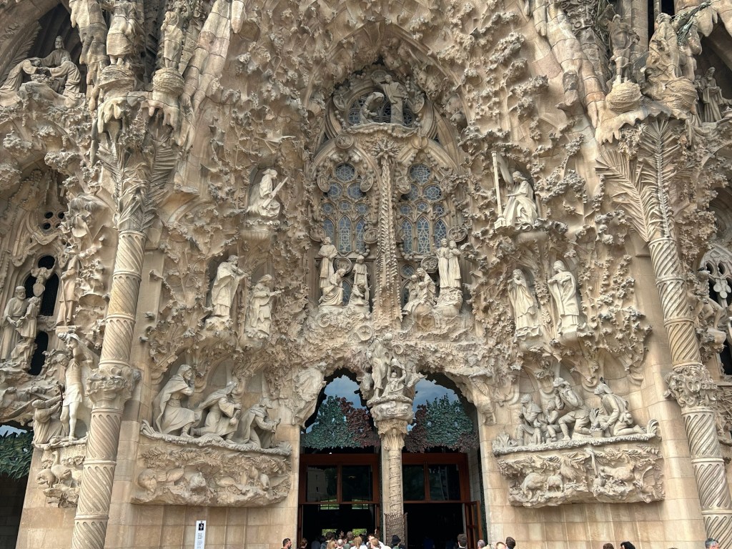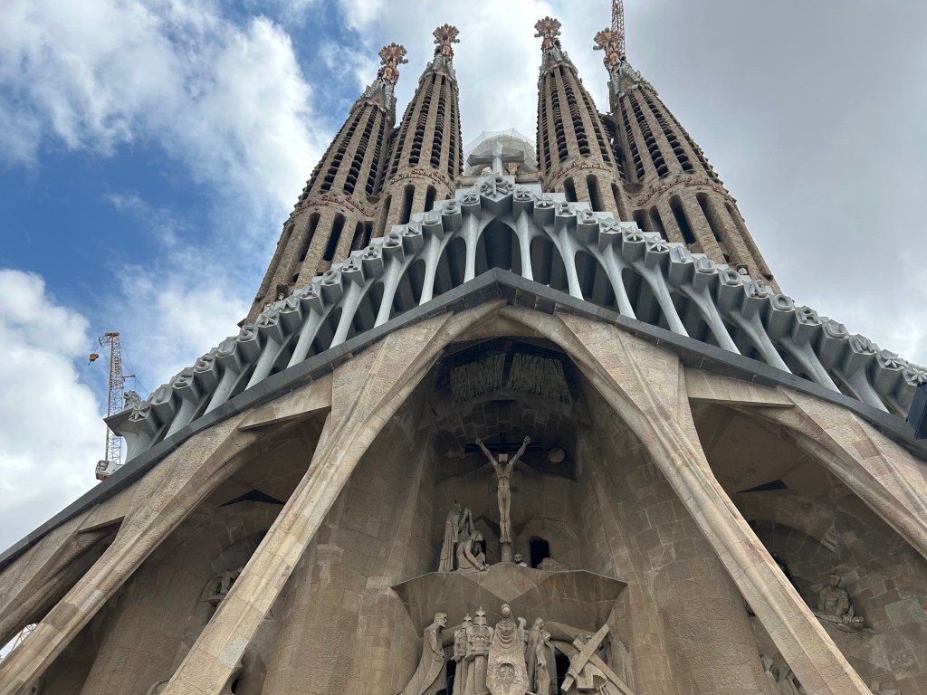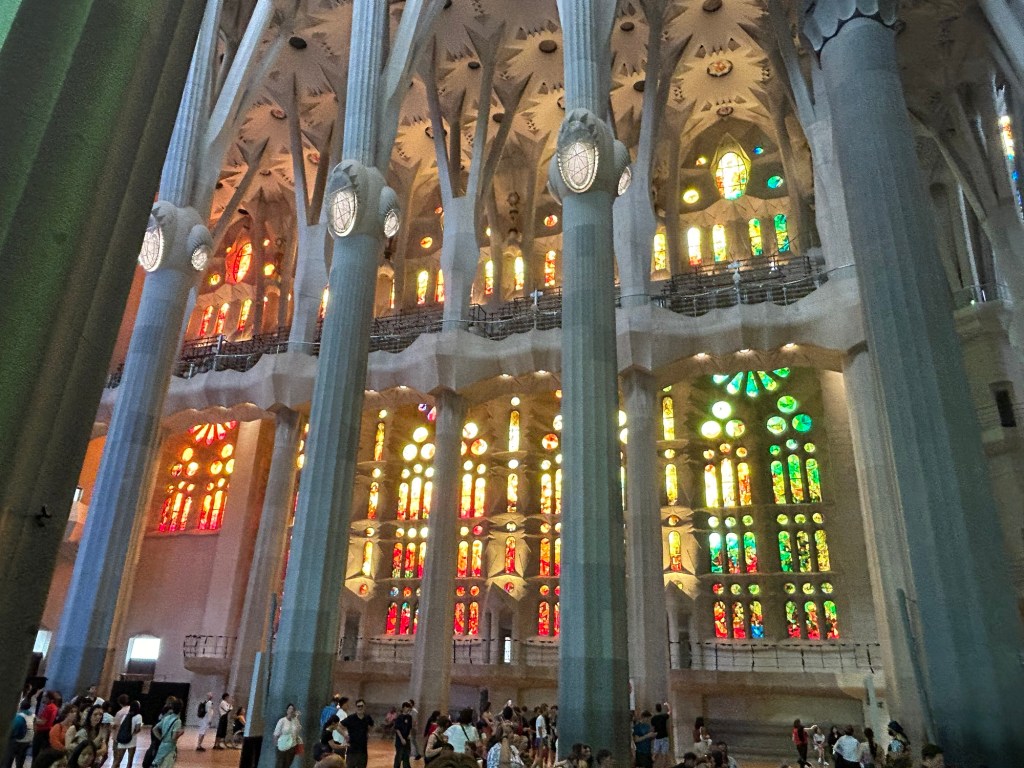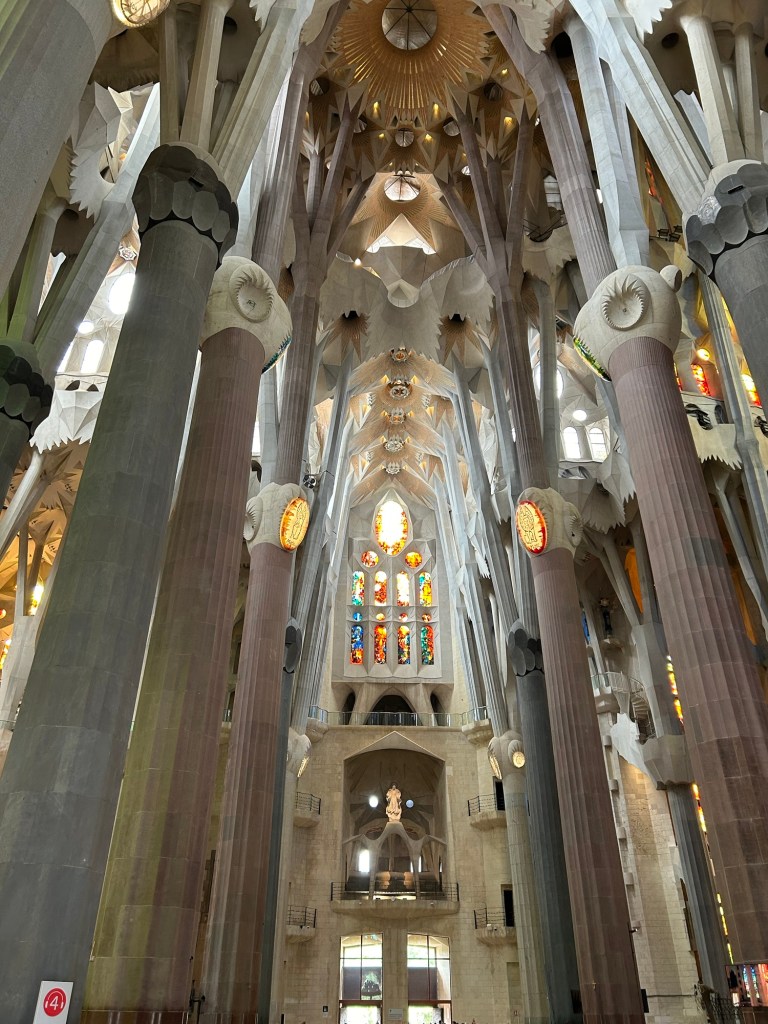 Then, we went to the grand daddy of them all, the Sagrada Familia. Merritt and I spent time in Barcelona in 2009 so we’d been to these sights before – I consider the Sagrada Familia to be the most extraordinary building I’ve ever seen. In 2009 when we visited it, our tour bus pulled up to the front of the church and the entire bus audibly gasped at its enormity and uniqueness. I remember it very distinctly. So we were really excited to visit again and see the progress they’ve made. This church has been under construction for 140 years and they expect it will be mostly complete in 2026 with finishing touches going into the ‘30s. The contrast between the intricacy and complexity of the outside design with the simplicity of the inside is crazy.